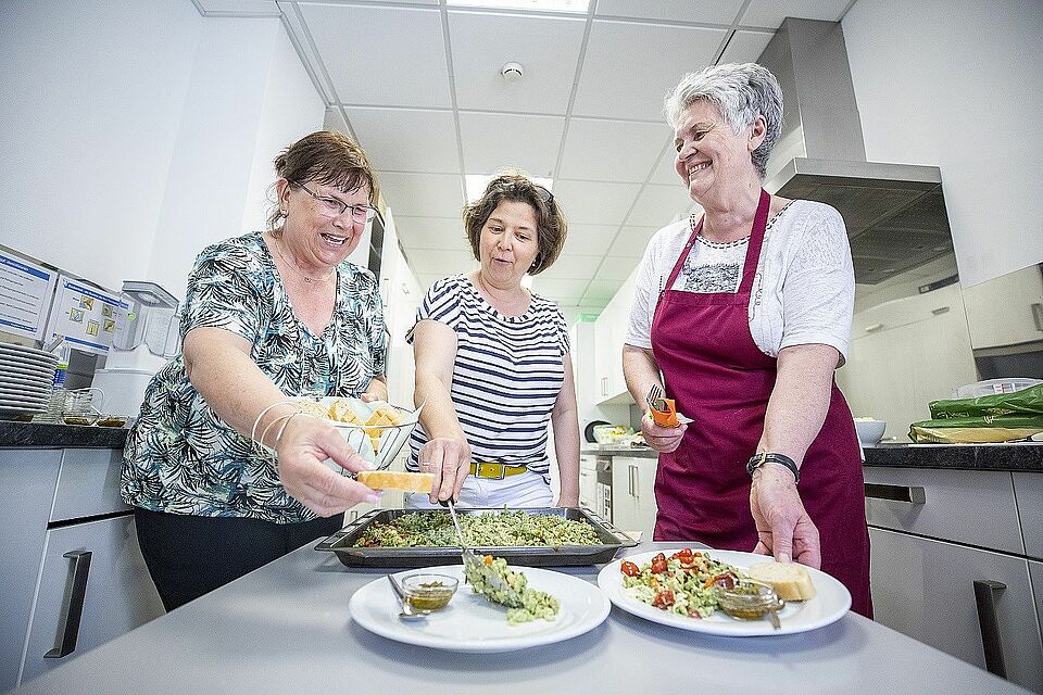 Darüber hinaus gibt es gemeinsame Mahlzeiten wie den Mittagstisch, an dem sich unsere Besucherinnen und Besucher aktiv einbringen können. Denn hier wird mit einer ausgebildeten Hauswirtschafterin gemeinsam gekocht.