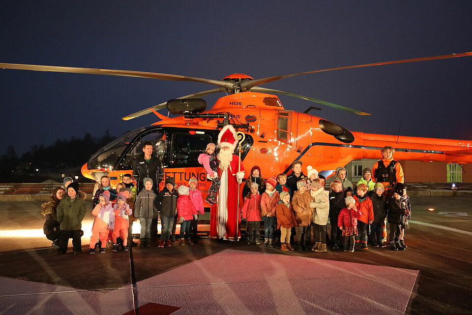 Zu diesem Anlass empfing die Besatzung des Rettungshubschraubers Christoph 14 gemeinsam mit dem Nikolaus die Kinder für eine Besichtigung der Luftrettungsstation und des Rettungshubschraubers. 30 Kinder sowie deren Eltern nahmen teil und staunten nicht schlecht, als der Nikolaus im Rettungshubschrauber landete. Nach einer ausführlichen Besichtigung des Rettungshubschraubers erhielten die Kinder kleine Präsente vom Nikolaus.