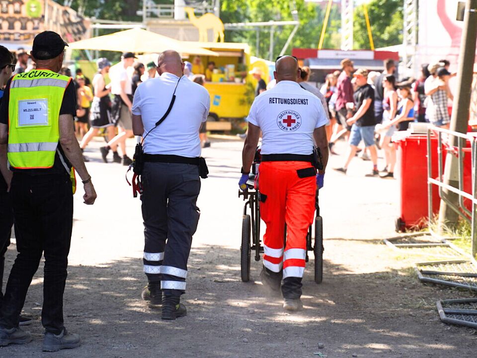 Parallel wurden die anwesenden Einsatzkräfte auf einen aus unklarer Ursache gestürzten und bewusstlosen Patienten in unmittelbarer Nähe des Ereignisses aufmerksam gemacht. Das vor Ort befindliche Erstversorgungsteam leitete umgehend Wiederbelebungsmaßnahmen ein. Schon nach wenigen Minuten konnte der Kreislauf des Patienten wiederhergestellt werden. Unter ärztlicher Begleitung konnte der Patient mit einem Rettungswagen des Sanitätsdienstes in ein nahegelegenes Klinikum gebracht werden. Aus Sicht des Sanitätsdienstes besteht aufgrund der Gesamtumstände des Vorfalls kein Zusammenhang zum Festivalgeschehen und damit auch ausdrücklich nicht zum oben genannten Kleinbrand. Vielmehr hatte der Patient Glück, dass er sich auf einer Großveranstaltung befand und deshalb zufälligerweise ein arztbesetztes Rettungsteam in seiner unmittelbaren Nähe war und die notärztlichen Wiederbelebungsmaßnahmen sofort eingeleitet wurden.