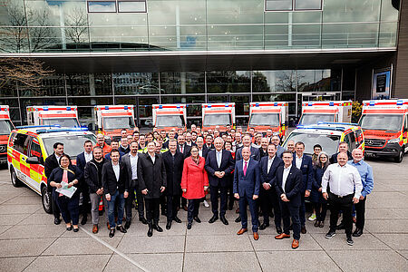 Ein Expertenteam der Durchführenden im bayerischen Rettungsdienst hat heute in München zusammen mit den Herstellern von Basisfahrzeug und Aufbau den ersten Krankentransportwagen (KTW) der nächsten Generation in Bayern abgenommen.