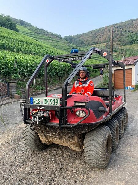 Einsätze in unwegsamem Gelände stellen eine besondere Herausforderung für Rettungs- und Einsatzkräfte dar, da die üblichen Einsatzfahrzeuge hier an ihre Grenzen kommen. Seit fünf Jahren steht der sogenannte „ARGO 8x8“, ein Amphibienfahrzeug auf acht Rädern, bei den BRK-Bereitschaften in Unterfranken für solch besondere Einsätze zur Verfügung.